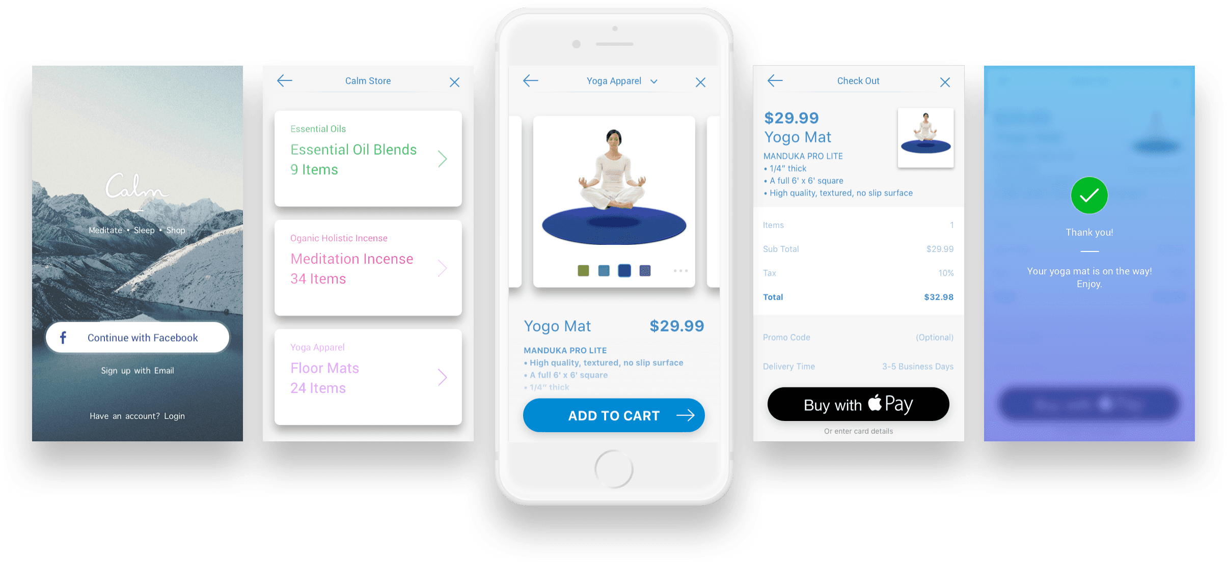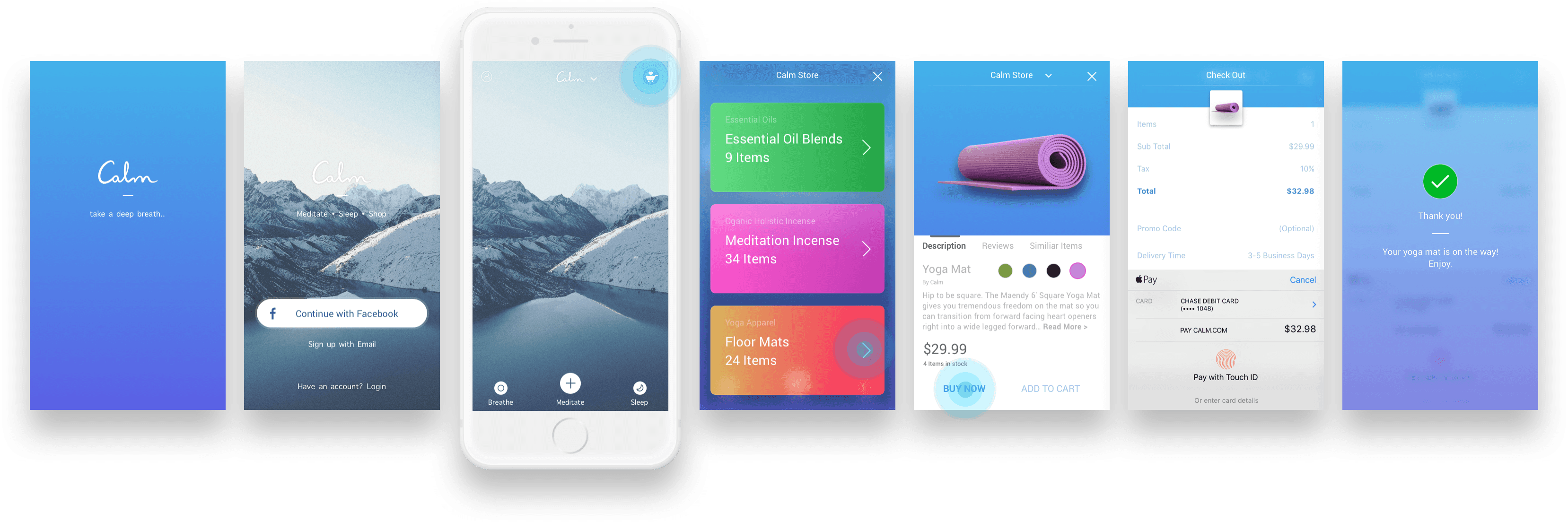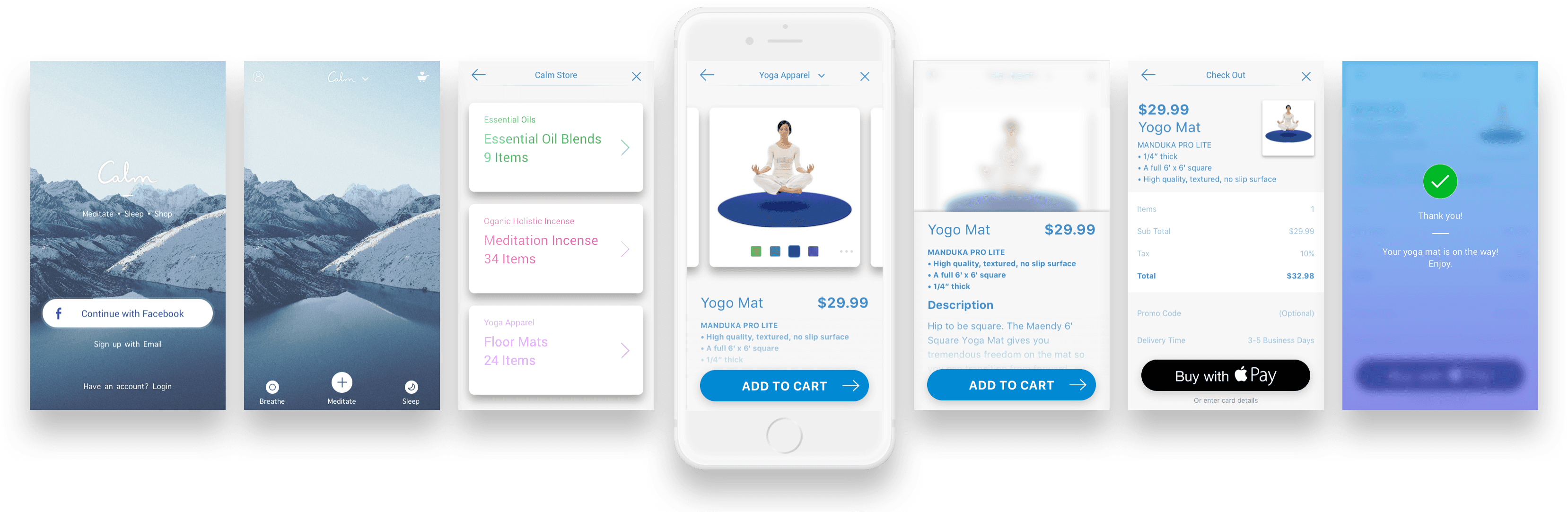 Given the existing user preference for a seamless in-and-out interaction within 'rooms', it's imperative we respect this flow. However, as our product array expands, there's a need to reevaluate the shopping experience to ensure it doesn’t deviate from Calm's core user journey or morph into just another online store. My proposal? A distinct shopping experience. Perhaps a button within the profile page that redirects users to a mobile-optimized shopping platform, allowing for an effortless return post-purchase.