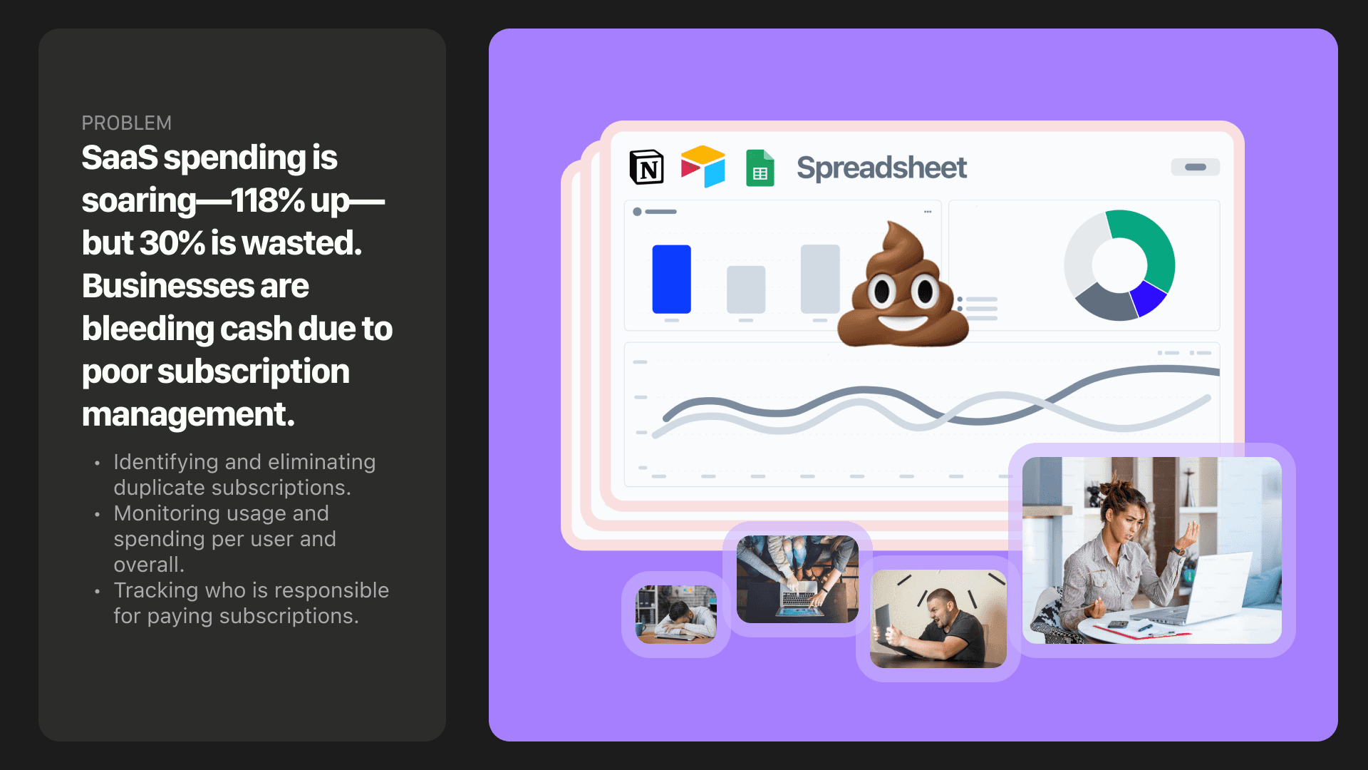 Handled the product vision and design, making sure we were solving real problems for businesses struggling with SaaS subscription management.